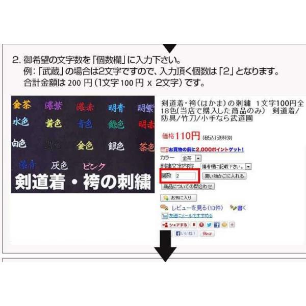 剣道着 袴 はかまの刺繍 1文字100円 税別 全18色 当店で購入した商品のみ 剣道着 防具 竹刀 小手なら武道園 Buyee Buyee Japanese Proxy Service Buy From Japan Bot Online
