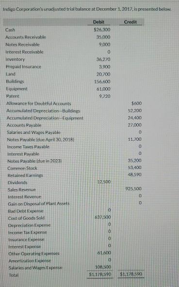 Solved Indigo Corporation S Unadjusted Trial Balance At D Chegg Com