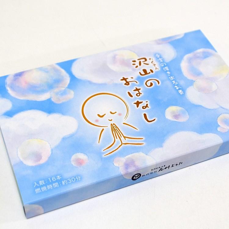 楽天市場 お線香 沢山のおはなし 文字が浮き出るお香 日本製 16種類の元気がでる言葉 燃焼時間約30分 煙少香 しゃぼんの香り 文字 喪中見舞い 丸叶むらた 2個までネコポス対応 換気 空気清浄 お香 数珠 仏壇のe Namu庵心堂