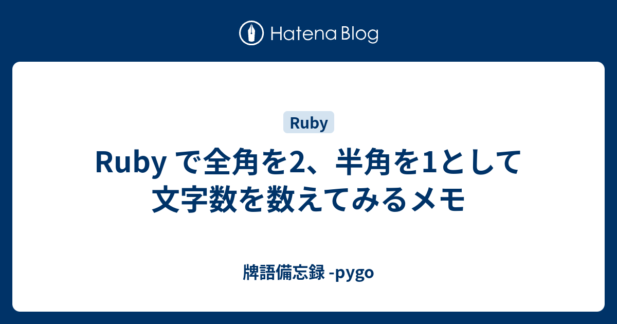 Ruby で全角を2 半角を1として文字数を数えてみるメモ 牌語備忘録 Pygo