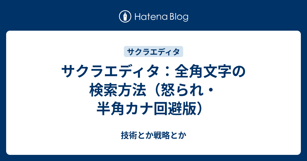 サクラエディタ 全角文字の検索方法 怒られ 半角カナ回避版 技術とか戦略とか