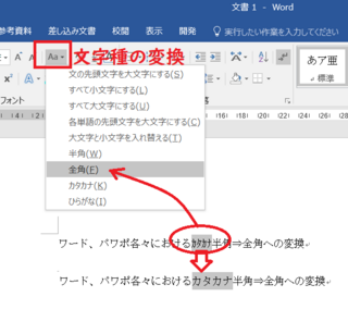 文章中の全角半角や大文字小文字ひらがなカタカナをwordで変換 統一する方法