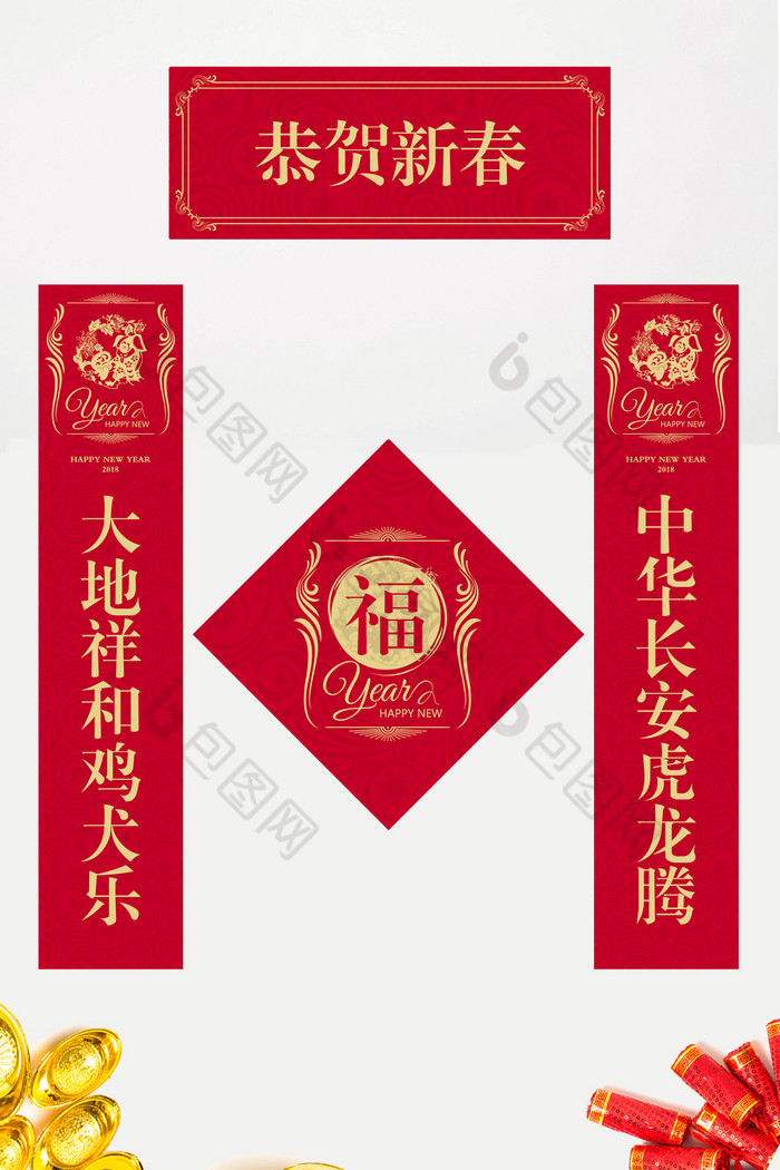 恭贺新春狗年春联对联二联金色文字横幅模板 包图网
