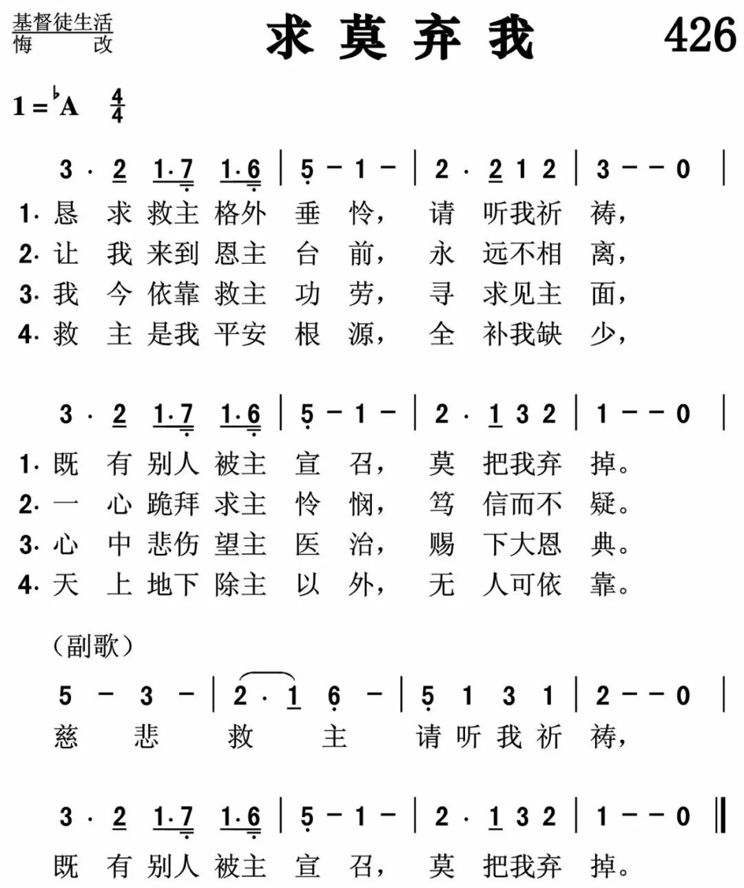 每日跟唱 第426首 求莫弃我 每首配有mp3 简谱和线谱 计划两年学完707全国版诗歌本 基督复临安息日会