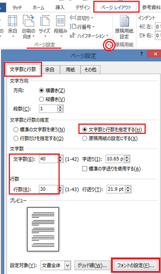 ワードで 縦書き1600字 40文字 40行 に設定したいの Yahoo 知恵袋